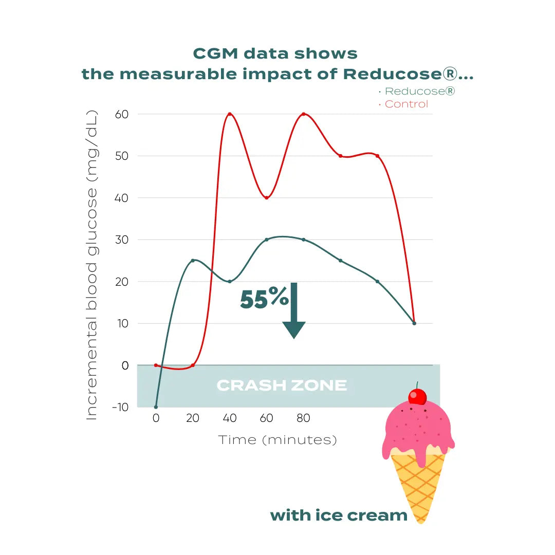 Reducose® is a natural mulberry leaf extract designed to support healthy blood sugar levels. It works by slowing down the absorption of carbohydrates, thereby reducing post-meal blood sugar spikes. This can result in 40% lower post-meal blood sugar & insulin response.